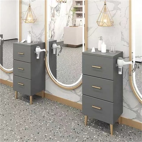 خزانة أدوات خشبية بثلاثة أدراج ترولي لمحلات الحلاقة رف تخزين متعدد الوظائف لخزانة صالونات الشعر التجميلية