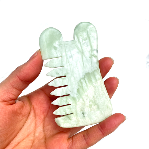 أداة Gua Sha طبيعية لتدليك فروة الرأس وفروة الرأس للجسم لإنبات الشعر ومشط اليشم المحفور السميك